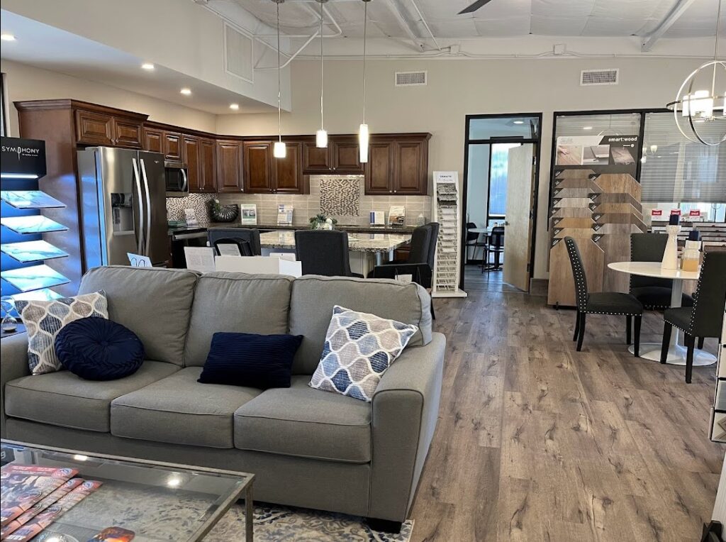 Our 2500 sq. ft. showroom (a golf-cart drive away!) includes a design selection center with displays of kitchen and bath cabinets, countertops, flooring, window treatments, and more!