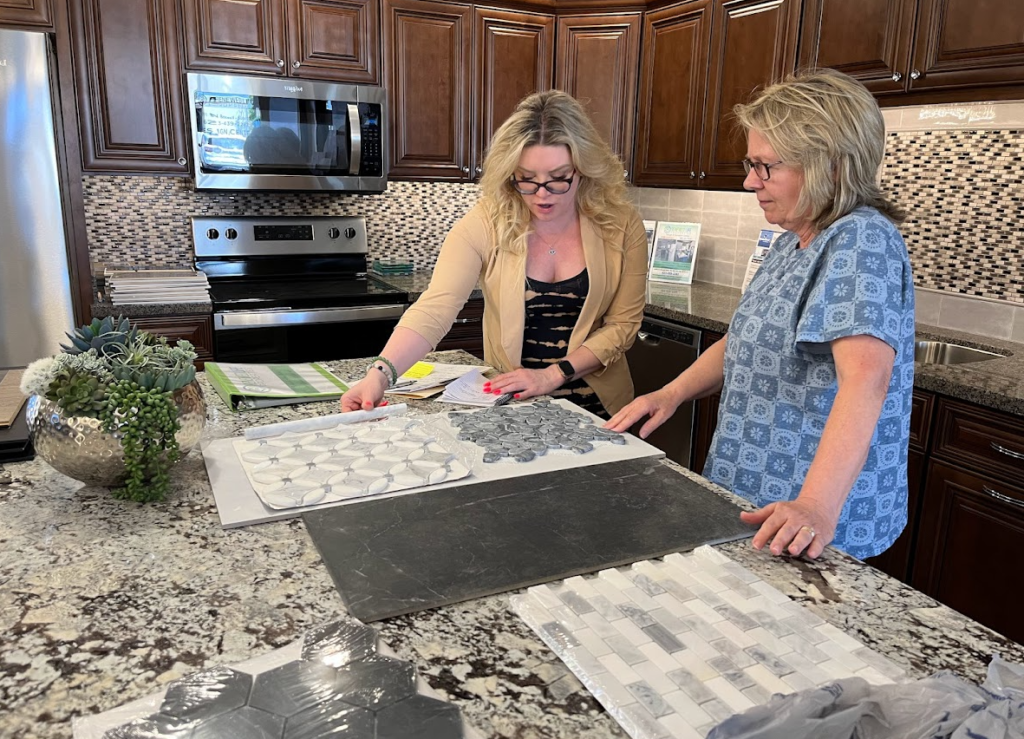 With every project, you get a one-hour consultation here at our showroom with Cheyanne to choose your selections. She will ensure that your whole space is cohesive, especially if you are only changing out certain items (i.e., you’re getting new kitchen cabinets but keeping your flooring.)